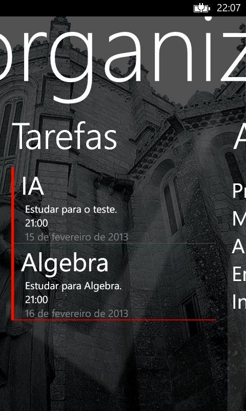 Foi adicionado o LiveTile da aplicação em que agora aparece a informação da próxima aula.